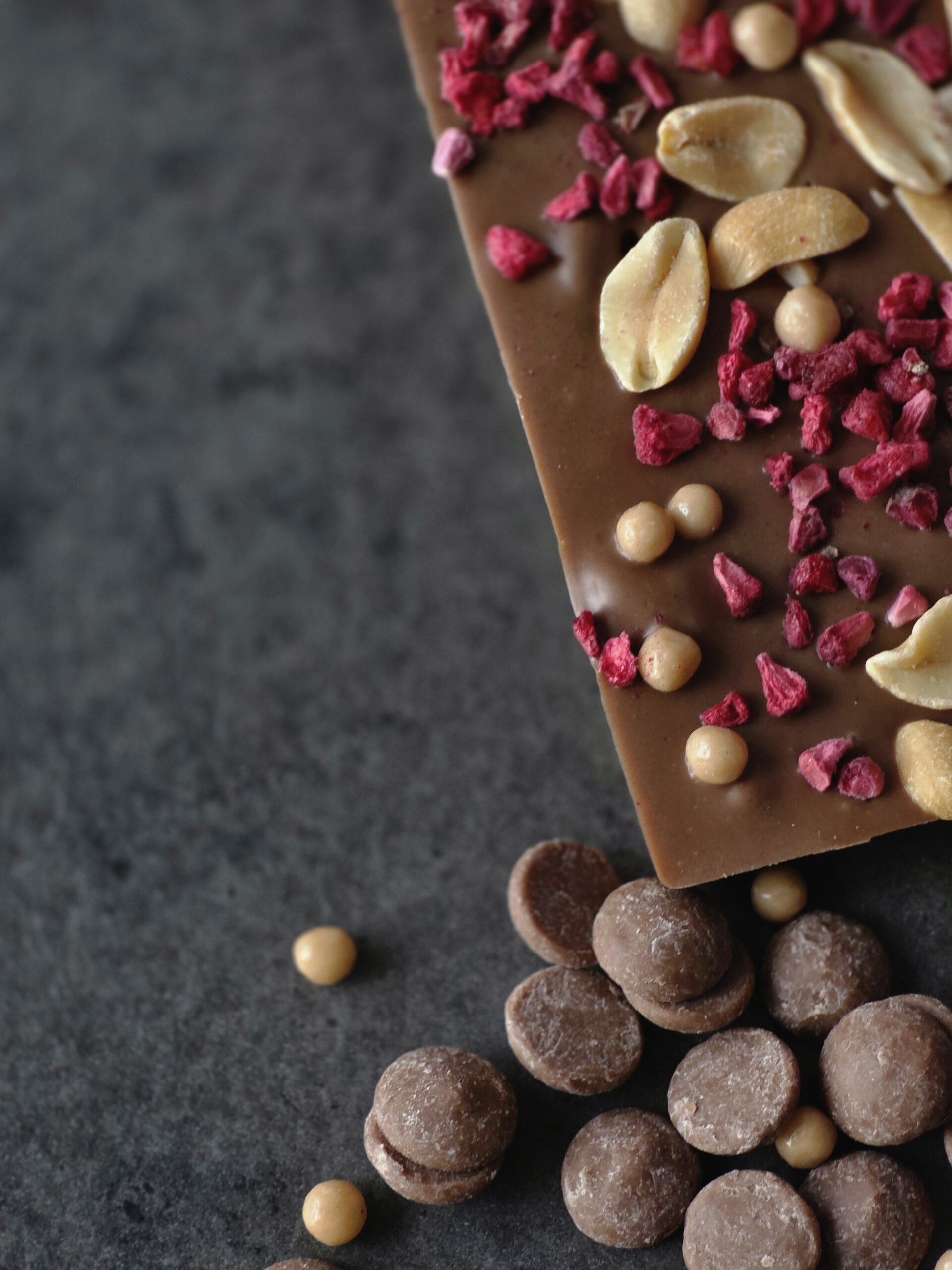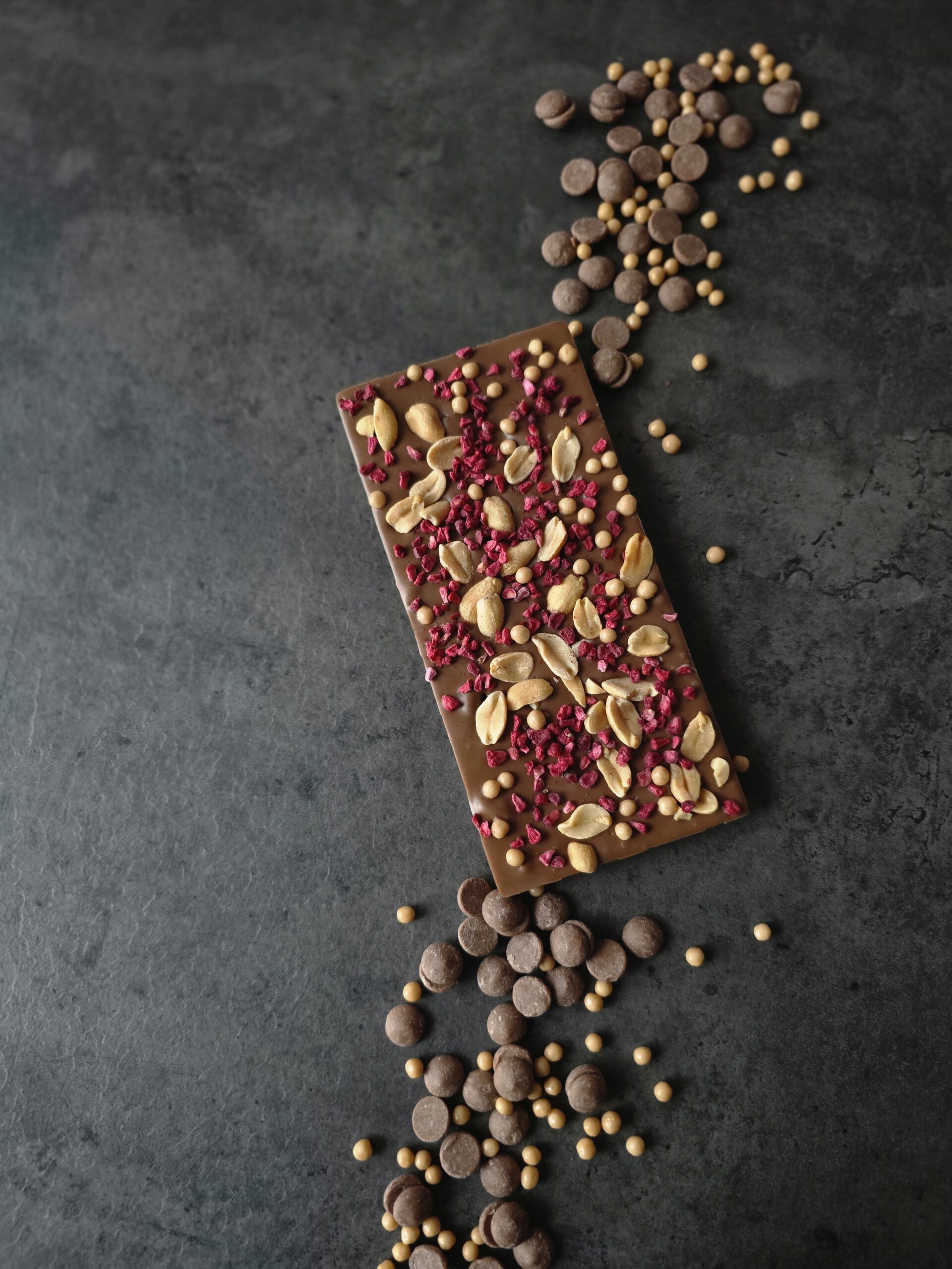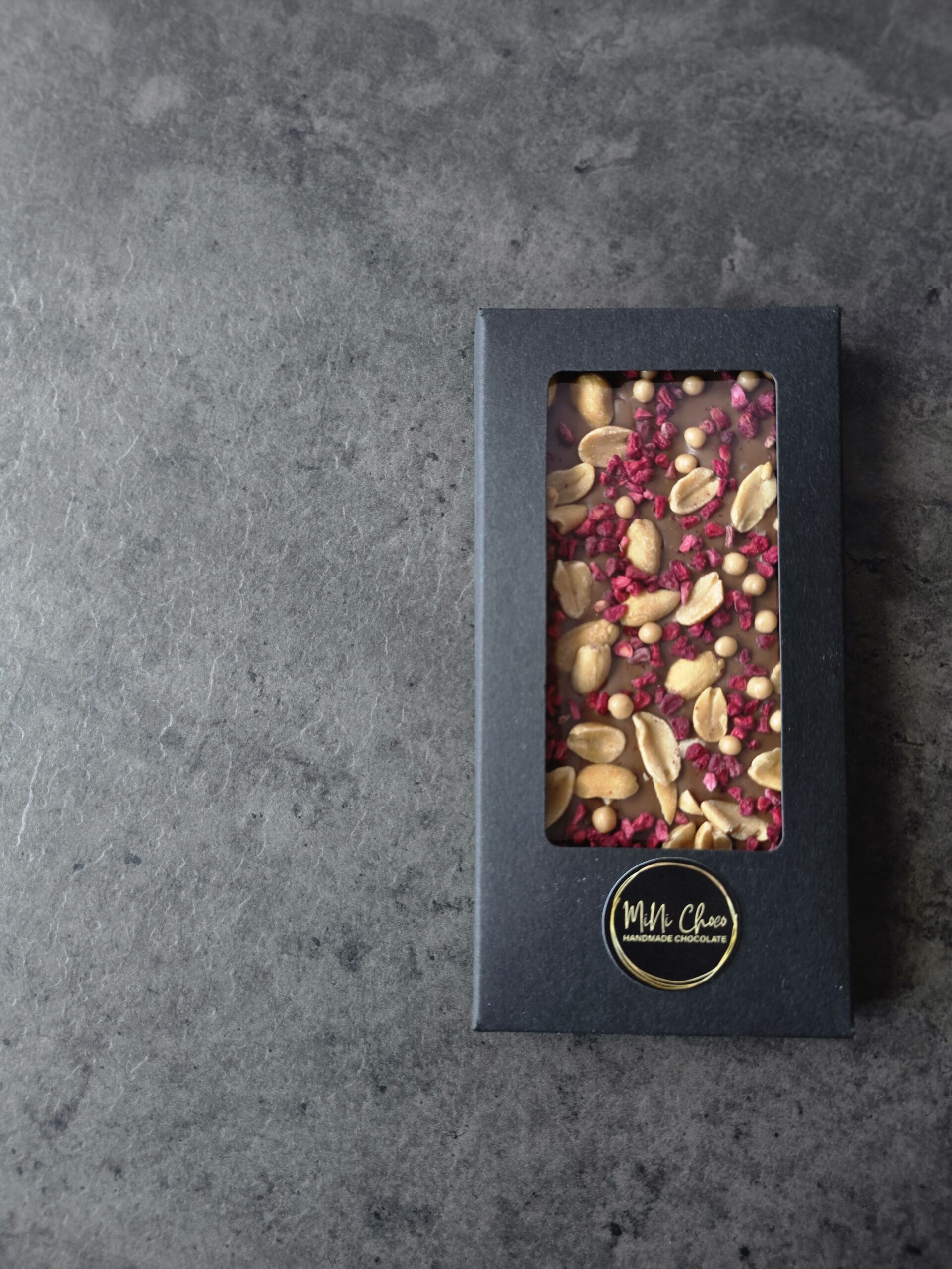 Sametine piimašokolaad, soolapähkel, külmkuivatatud vaarikas ja karamelliga kaetud krõbe riisipallid – magus, soolane ja marjane harmoonia igas ampsus.